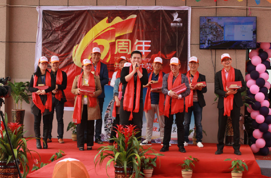 每個(gè)團(tuán)隊(duì)都獻(xiàn)出了自己的周年慶禮物,聯(lián)欣將帶著這些美好的祝福,繼續(xù)發(fā)展壯大。接下來的環(huán)節(jié)是邀請(qǐng)公司三年及四年你的老員工上臺(tái)了,公司為他們頒發(fā)了六周年紀(jì)念品。這些心意是為了感謝他們對(duì)公司的無私付出,正是有了他們,我們聯(lián)欣才取得如此驕人的成績。聯(lián)欣科技趙總、王總、胡總、江總和聯(lián)欣電商吳總給他們頒發(fā)了六周年紀(jì)念品。