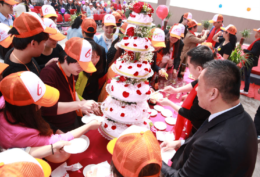 下面的環(huán)節(jié)可是很多小伙伴期待已久的哦——開香檳,吃蛋糕嘍,你瞧大家玩的多開心。我們聯(lián)欣的發(fā)展勢(shì)頭也正如這香檳酒一樣——?jiǎng)莶豢蓳酢?/p>