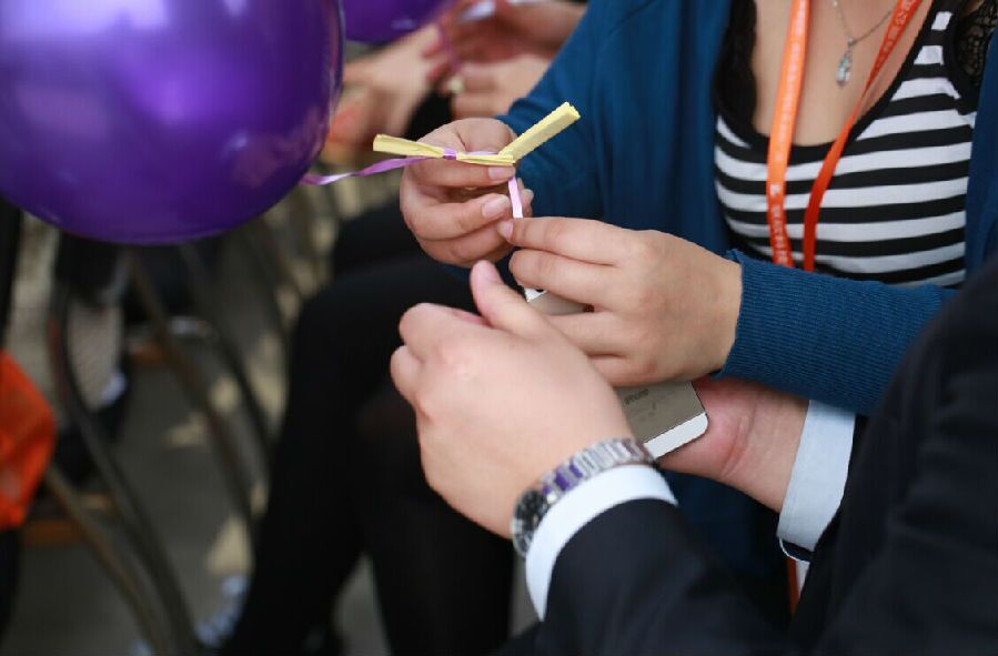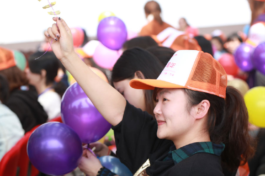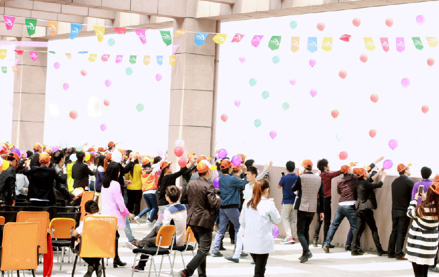 接下來是我們六周年慶的最后一個(gè)環(huán)節(jié)——放飛夢(mèng)想。大家把自己的夢(mèng)想和對(duì)聯(lián)欣的祝福寫在便簽上,讓它隨著氣球飛向藍(lán)天。