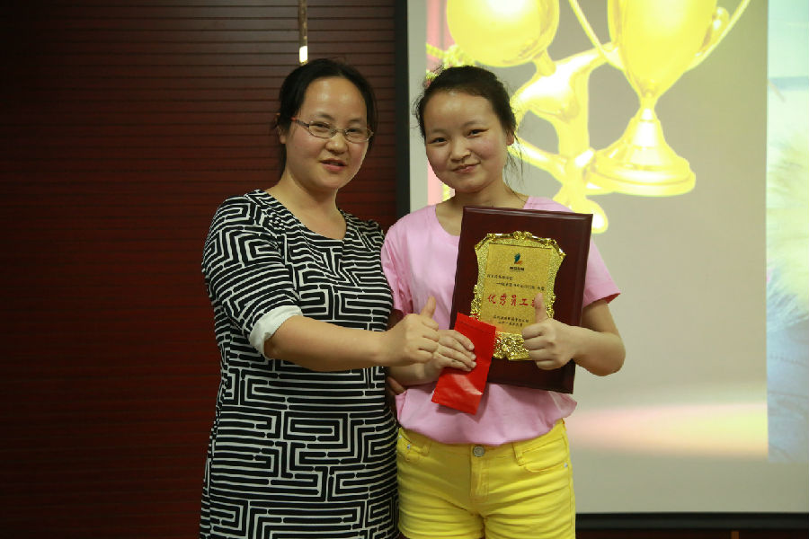 我們所有的優(yōu)秀員工候選都是有各部門的負(fù)責(zé)人進(jìn)行提名的,我們有請(qǐng)嘉賓給我們所有的候選人頒發(fā)了花環(huán)和獎(jiǎng)品。所有的候選人提交到的我們公司副總那里,最后誕生了我們的4名優(yōu)秀員工。