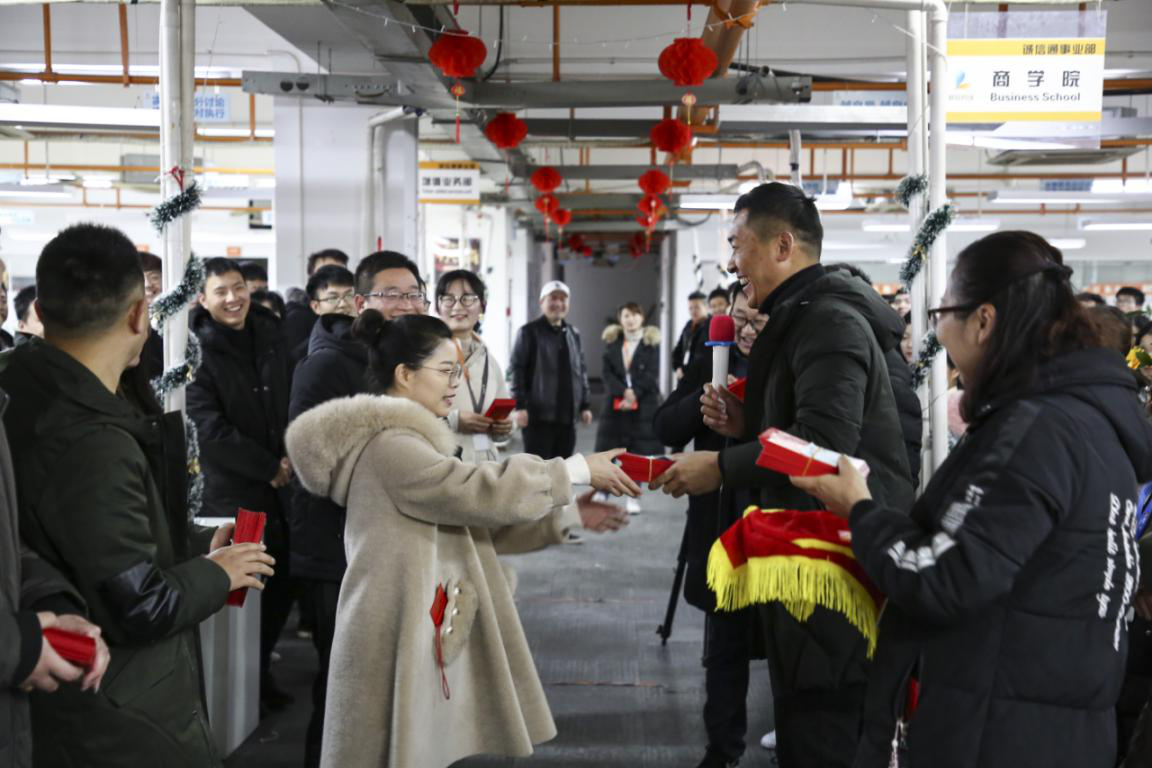 隨后,董事長(zhǎng)趙新立先生攜公司股東層為廣大員工送上了新春?jiǎn)柡蚝驼\摯的祝福,并給員工派發(fā)了新年慰問紅包,意味著新年好彩頭,紅紅火火,將現(xiàn)場(chǎng)氣氛推向了高潮。