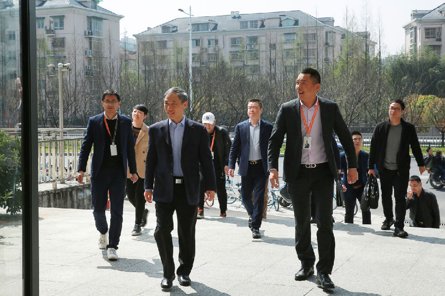 2019年3月30日上午,溫州市副市長殷志軍、副秘書長陳棟、鹿城區政府、市商務局、市金融辦及南郊街道馬主任一行前來聯欣科技參觀指導工作。聯欣集團董事長趙新立、總裁吳勇波、副總裁王文輝、常務副總胡凱陪同參觀了聯欣科技總部并就聯欣科技目前的工作情況作出匯報。
