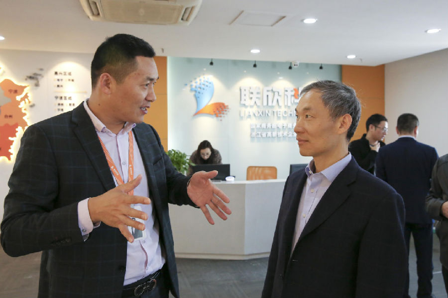 領導組一行仔細詢問了聯欣科技的發展狀況與運營模式,并對聯欣科技的經營發展給予了充分肯定。與此同時,領導組與聯欣科技就企業可持續發展問題進行深入的溝通與交流。