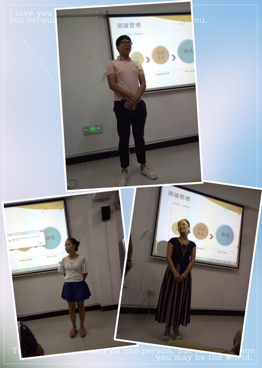既然我們是為期兩天的培訓(xùn),是一個(gè)完善的班級(jí),肯定是要有班級(jí)干部的。Dang ~ dang~ dang~ 新鮮的學(xué)習(xí)委員,紀(jì)律委員和班長(zhǎng)也被我們的兩個(gè)美女和一個(gè)帥哥給收攬了。