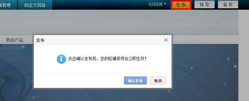 1)設置入口:路徑:“我的阿里”首頁—— “賣家交易管理”——營銷設置-“滿優惠設置”——設置好相關時間、條件及說明后點擊保存——點擊“將活動展示到旺鋪”——保存完成!